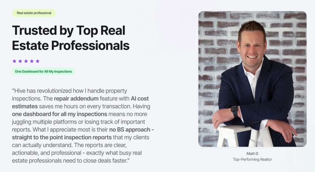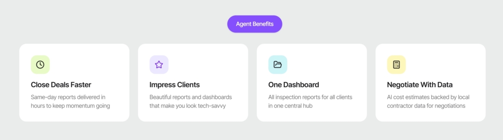 Our reports feature a Repair Request Document generator for our agent partners. This helps agents quickly grab our language to copy/paste into their document to ask for repairs or concessions.